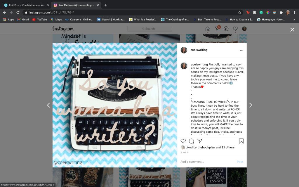 Check out this Instagram post of mine where I offer valuable writing tips in my caption: