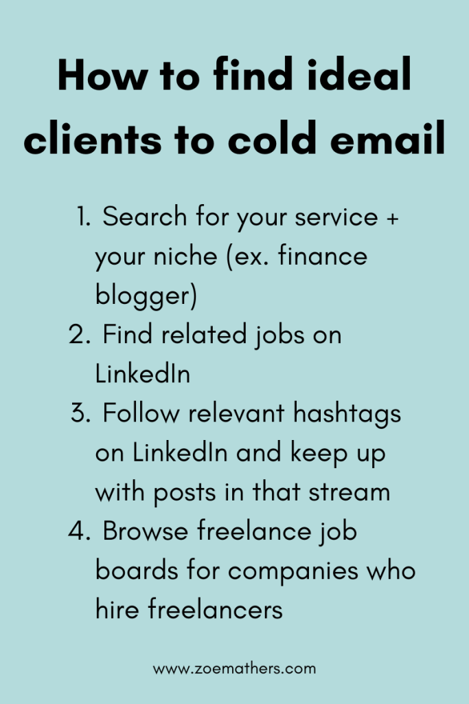 Cold emailing is when you find ideal clients who you don’t know and who don’t know you, and offer your services via email. Here are some resources for writing good cold emails: A Guide to Cold Emailing, How to Write a Cold Email That Actually Works in 6-Steps and Improve Your Cold Email Reply Rates: 10 Proven Formulas That Works.